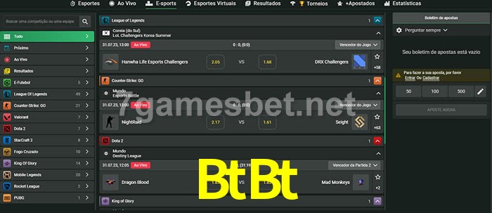 A aposta BtBt oferece aos jogadores a experiência mais conveniente de apostas em eSports!